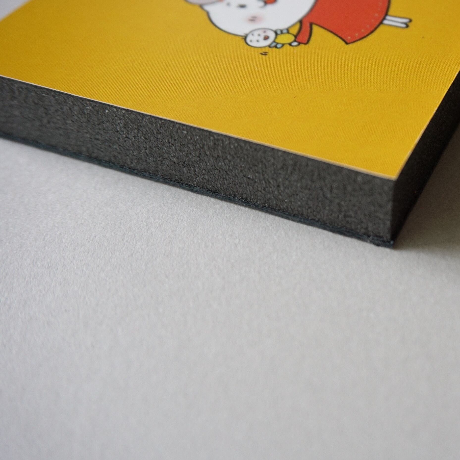 オンデマンドプリント機により画像をプリントしており、マットラミネートで表面を覆っています。